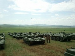 Россия с начала 2012 года поставила Монголии крупную партию вооружений и военной техники из состава российских вооруженных сил. В частности, монгольской стороне были переданы до 50 основных боевых танков Т-72А, 40 модернизированных бронетранспортеров БТР-70М и автомобили "Урал". |