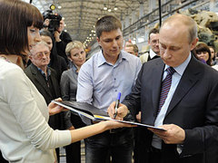 Минобороны России подписало в рамках гособоронзаказа контракт с "Уралвагонзаводом" стоимостью шесть миллиардов рублей. По словам президента Владимира Путина, контракт был подписан 8 мая "на очень большой объем работ, который должен загрузить по военной части завод на три года вперед". |