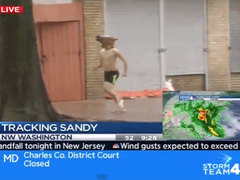 В телерепортаж канала NBC о тропическом шторме "Сэнди" на востоке США попал полуголый мужчина в резиновой маске коня. Американец, идентифицированный журналистами как Джимми Крюайн, оказался в вашингтонском выпуске новостей. Он выбежал на улицу в шортах и маске, когда увидел съемочную группу....