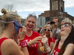 В Берлине состоялась вторая в истории хипстерская Олимпиада. Турнир устроили в субботу, 21 июля. В мероприятии приняли участие несколько сотен молодых людей, которые соревновались в самых разнообразных "видах спорта": от подбрасывания очков до перетягивания узких джинсов. |