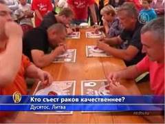 В Литве состоялся конкурс по поеданию раков. В мероприятии приняли участие несколько человек, а понаблюдать за конкурсантами пришли более двух сотен зрителей. Участникам чемпионата предстояло есть раков не на скорость, а на тщательность - чем меньше останется от членистоногого, тем лучше результат. |