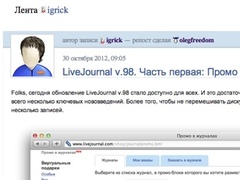 Блогохостинг LiveJournal ввел 30 октября новый внешний вид ленты друзей, единый для всех пользователей. В новой френдленте нет рекламных баннеров и появилась динамическая подгрузка записей при прокрутке страницы. Также 30 октября ЖЖ запустил Промо в журналах, позволяющий блогерам рекламировать свои посты.