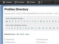 Сервис микроблогов Twitter создал базу аккаунтов пользователей, отсортированных в алфавитном порядке. Список нужен для того, чтобы пользователи могли находить нужные им аккаунты через поисковики. Но оказалось, что поисковики еще не полностью проиндексировали базу аккаунтов. |