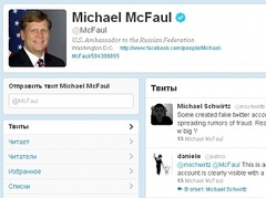 В поддельном микроблоге посла США в России Майкла Макфола 4 марта опубликовали сообщение о нелегитимности выборов президента РФ. Запись вызвала критику со стороны российских пользователей Twitter, в частности, главреда Russia Today Маргариты Симоньян. Позднее настоящий Макфол опроверг сообщение "фальшивого"....