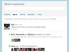 Сервис Twitter изменил систему уведомлений о новых событиях. Ленту уведомлений разделили на два потока. В первом отображается информация, касающаяся непосредственно пользователя, а во втором - его друзей. Чтобы открыть первый поток, нужно нажать на вкладку с логином, чтобы открыть второй поток - на вкладку "Активность"....