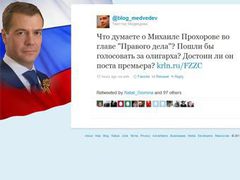 Администрация сервиса микроблогов Twitter удалила фальшивый блог президента РФ Дмитрия Медведева. Блог, через который распространили фальшивое сообщение о назначении Михаила Прохорова премьер-министром, был сначала заблокирован, а теперь окончательно удален по запросу пресс-службы Медведева. |