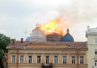 Горящий купол Троицкого собора Санкт-Петербурга. Фото Всеволода Васильева, специально для Lenta.Ru
