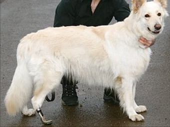 Овчарка по кличке Митци, лишившаяся нижней части передней лапы, обзавелась протезом, сообщает BBC News. Искусственную лодыжку животному поставил ветеринар Ноэль Фицпатрик из британского города Годалминг. По словам специалиста, Митци стала первой собакой с протезом лапы, выполненным из титана и позволяющим животному не только ходить без всяких трудностей, но и бегать.