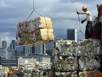 Погрузка бумажного мусора в порту Гонконга. Фото ©AFP