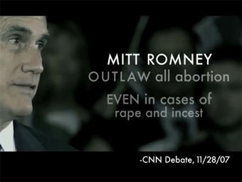 В нем утверждается, что Ромни поддерживает закон, который полностью запретит аборты, в том числе в случаях изнасилования и инцеста.