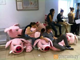 Напомним, в магазин эконом-класса "Народный" в конце июня нагрянули активисты молодежного движения "Хрюши против", борющегося за соблюдение прав потребителей, переодетые в костюмы поросят