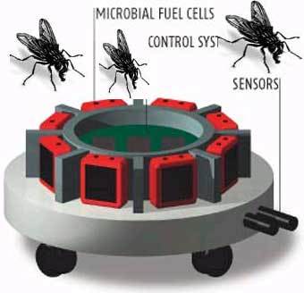 Он заманивает мух запахом, издаваемым человеческими экскрементами. Привлеченное ароматом насекомое залетает внутрь аппарата, но обратно уже выбраться не может. Источником энергии для робота является сахар, содержащийся в полисахариде, называемом хитином, из которого состоит внешний скелет насекомого.