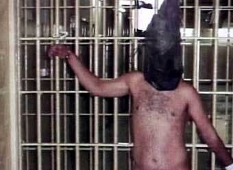 Ираский заключенный в тюрьме Абу Граиб, кадр ОРТ