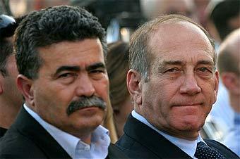 Амир Перец (слева) и Эхуд Ольмерт. Фото AFP