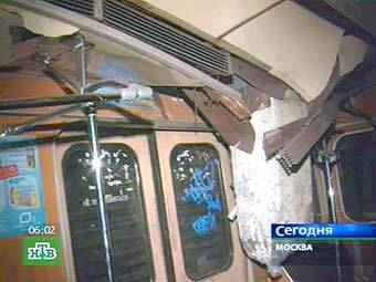 Пробитый сваей вагон метропоезда. Кадр телеканала НТВ, архив