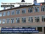 Два взрыва произошли в понедельник в Ингушетии у здания ГОВД города Карабулака. В результате первого погибли два милиционера. Во время второго взрыва никто не погиб. Четыре человека ранены. Не исключается возможность третьего теракта. Правоохранительные органы Ингушетии переведены на усиленный вариант несения службы. Первый взрыв у здания ГОВД города Карабулак произошел в 8:20 по московскому времени. Неизвестные лица привели в действие самодельное взрывное устройство, сообщил "Интерфаксу" источник в правоохранительных органах Ингушетии. По его словам, взрыв произошел на автостоянке у здания ГОВД. "По предварительной информации, взрыв произошел в легковой автомашине, припаркованной у здания ГОВД", - сказал источник.