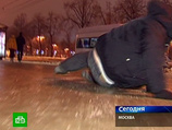 Москву сковало льдом. Тротуары после дождя превратились в каток