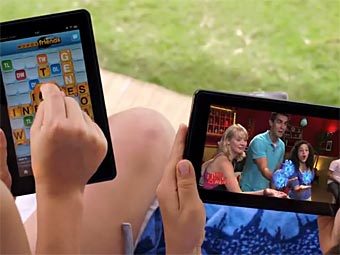 Amazon снял рекламу, в которой обыгрывается превосходство планшета Kindle Fire над iPad. Похожим образом, с помощью иронии, рекламирует свою продукцию другой конкурент Apple - Samsung.