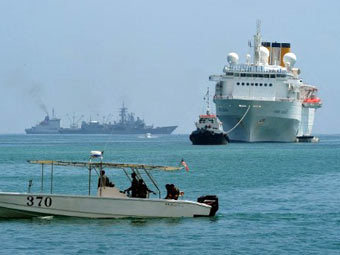"Они должны найти подходящую позицию, это нелегко, одна наши буксиры привыкли делать это", - заявил Аделин. Он также отметил, что для защиты от пиратов лайнер сопровождает вооруженная охрана.