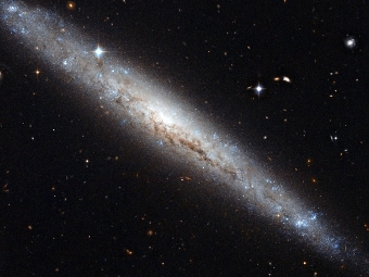На опубликованном изображении хорошо видно, что в составе галактики имеется большое количество межзвездной пыли. Пыль заслоняет свет дальних звезд и выглядит на фотографии как сеть темных филаментов.