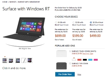 Планшет Surface на процессоре ARM с обложкой-клавиатурой Touch Cover в комплекте обойдется в 599 или 699 долларов США в зависимости от объема встроенной памяти (32 или 64 гигабайта). Планшет без обложки с 32 гигабайтами памяти будет стоить 499 долларов.