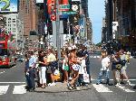 На эстраде - латиноамериканские артисты |  В разгар жаркого воскресного дня публика слушает латиноамериканский концерт в саду на 42-й улице |  Один из многочисленных лотков на Таймс Сквэр |