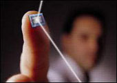 На этой неделе компания Microvision продемонстрировала полнофункциональный миниатюрный дисплей, проецирующий качественное цветное изображение прямо на сетчатку глаза. Основой устройства является микромеханический сканнер - маленькое вибрирующее зеркало, управляемое электронной схемой. Лучом света, составленным из лучей трех цветных светодиодов, микрозеркало через линзу "рисует" картинку прямо на сетчатке глаза.Благодаря такому дисплею пользователь, держа перед собой устройство не больше мобильного телефона, может "видеть" изображение размером с экран ноутбука, с разрешением не хуже SVGA (800X600). Это разрешение позволяет использовать устройство для чтения материалов из интернета без дополнительной "минимизации" (как того требует, например, WAP). Как полагают разработчики, сетчаточный мини-дисплей позволит решить проблему, с которой давно уже столкнулась компьютерная промышленность: компьютерные устройства уже могут быть достаточно миниатюрными, однако устройства ввода-вывода должны соответствовать "человеческим форматам". Одним из решений этой проблемы для дисплеев является замена "жесткого" экрана на проектор, который рисует изображение либо на любой поверхности, либо прямо на сетчатке глаза, как в случае мини-дисплея Microvision, пишет Нетоскоп. Microvision планирует в ближайшие два года модернизировать свой мини-дисплей и начать его массовое производство. При этом руководство Microsovision полагает, что рынок мини-дисплеев уже в ближайшие годы составит десятки миллионов подобных устройств. Мини-проекторы, обладая качеством не хуже обычных дисплеев карманных компьютеров, могут быть не только компактнее, но и дешевле. Однако, остается еще две проблемы: во-первых, нужно дождаться появления беспроводной 3G-сети и соответствующих устройств, позволяющих качать из интернета весь этот красивый контент на мобильные устройства. Во-вторых - и об этом не очень любят говорить разработчики мини-дисплеев - есть большие сомнения в том, насколько удобно смотреть веб-страницы одним глазом. Корреспондент.net Другие Новости в этой рубрике Геймеру-профессионалу хватит и 21 клавиши OpenPeak Simple Remote: универсальный пульт управления, телефон и плеер Pioneer выпустила свой первый привод Blu-Ray Новая бесшумная видеокарта от Gygabyte Фонарик для уха освобождает руки Карманный компьютер Cassiopeia E-2000 под управлением Pocket PC 2002. Flipster! Первый ПОРТАтивный МР3/МР4 плеер. МР3 плеер от MTV и DataPlay! IBM выбывает из Олимипады Nokia дальше расширяет свой модельный ряд. Фотокамера с изюминкой от Hewlett-Packard. РС карта-адаптер для работы с четырьмя типами карт flash-памяти. Бассейны переходят на Linux ПОРТАтивный видеоплейер размером со спичечный коробок. Видеокамера от JVC с мегапиксельной матрицей. Клавиатура и кожаный чехол в одном флаконе. Q-pad для Palm Vx и Visor Palm i705 уже скоро, но нужен ли он? Sony Clie S360. Новый/старый КПК. Цветной Philips Fisio 820. Видеокамера на ладошке. |