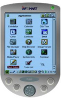 Индийская фирма Infomart представляет семейство карманных компьютеров под управлением Linux OS под общим названием Kaii (на местном диалекте это значит - "рука"). Kaii позиционируется как боле мощное чем Palm решение, но гораздо более дешевое чем Pocket PC. Так в скором времени мир увидят два КПК, первый ценой в 300$ с цветным дисплеем и второй за 200$ с монохромным. Технические характеристики компьютеров таковы: сенсорный ЖК дисплей с разрешением 320х240 пикселей (цветной и монохромный соответственно), процессор SH3 160MHz, 128 или 32 мегабайта оперативной памяти, 32 мегабайта флеш-памяти или ROM модуль, USB, RS232C, rDA порты, поддержка CompactFlash Type II и MMC карт памяти и расширения.