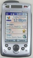 Поддержка GSM 900/1800, цветной, сенсорный ЖК дисплей диагональю 3.5 дюймов, с разрешением 320х240 пикселей, отображающий до 65 тысяч цветов, плюс второй монохромный «телефонный» ЖК дисплейчик в верхней части лицевой панели, 64 мегабайта оперативной памяти и 32 мегабайта флэш-памяти, ИК порт, USB, поддержка карт расширения формата Compact Flash Type I, WEB, WAP 1.2.1, Java J2ME. Литий ионный аккумулятор, которого хватает на 3 часа разговора или 170 часов ожидания вызова. Размеры новинки 137 * 77.8 * 16.7, вес 184 грамма.