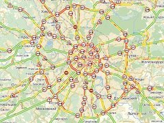 В Москве на Садовом кольце появились три рекламных экрана с данными "Яндекс.Пробок". Экраны расположены рядом с Баррикадной улицей, Большим Левшинским переулком и Новой Басманной улицей. Информация о пробках появляется раз в несколько минут. Всего информацию о пробках планируется транслировать на 12 экранах Москвы. |