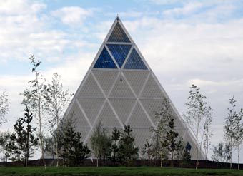 Второй съезд лидеров мировых и традиционных религий проходит в новом здании Дворца мира и согласия, которое было построено под руководством известного британского архитектора Нормана Фостера, ставшего также одним из авторов комплекса небоскребов, возводимых на месте уничтоженного террористами в 2001 году Всемирного Торгового Центра в Нью-Йорке.