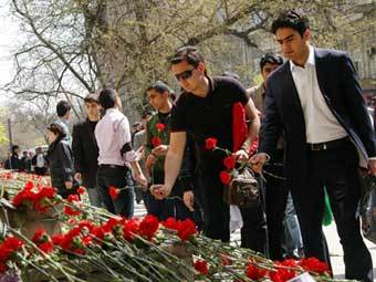 Жители Баку возлагают цветы в память о пострадавших при налете на нефтяную академию. Фото ©AFP