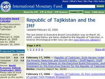 Глава миссии МВФ с удовлетворением отметил макроэкономические показатели Таджикистана, достигнутые в последние годы. по официальным данным, рост ВВП Таджикистана по итогам 2005 года составил 6,7 процента. В 2006 году рост ВВП Таджикистана ожидается на уровне 8 процентов.
