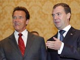 В не менее доброжелательной и непринужденной атмосфере прошли встречи российского президента также с губернатором Калифорнии и бывшей голливудской звездой Арнольдом Шварценеггером