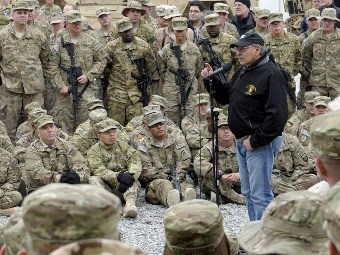 Леон Панетта во время посещения авиабазы в Кандагаре. Фото ©AFP-