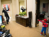 Забавная сценка была на днях размещена на странице президента в Facebook и получила уже более 600 тысяч "лайков". По данным блога The Lookout, миниатюрный спайдермен - сын одного из сотрудников Белого дома. Хотя точной даты съемки не указано, судя по костюму мальчика, скорее всего, это было на Хэллоуин в конце октября или в начале ноября.